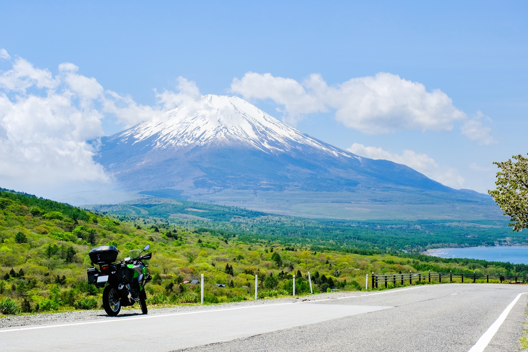 富士山の絶景を望む山中湖は、ツーリングでも屈指の人気エリア。