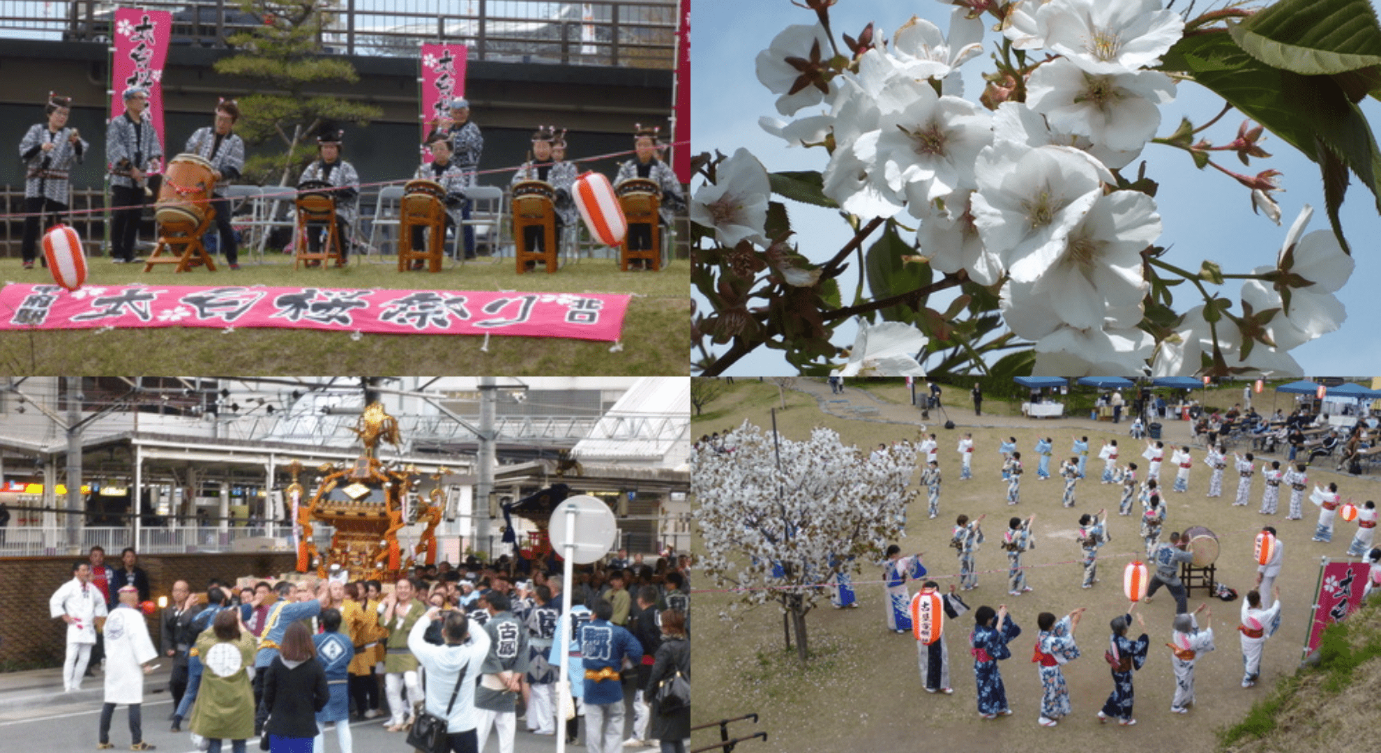 他ではなかなか見られない直径約5cmの大きく美しい白い花びらを咲かせる特別な桜、「太白桜」の植樹を記念して開催される春のイベントです。例年、多くの花見客が訪れ、見事な桜並木が写真映えすると話題です。