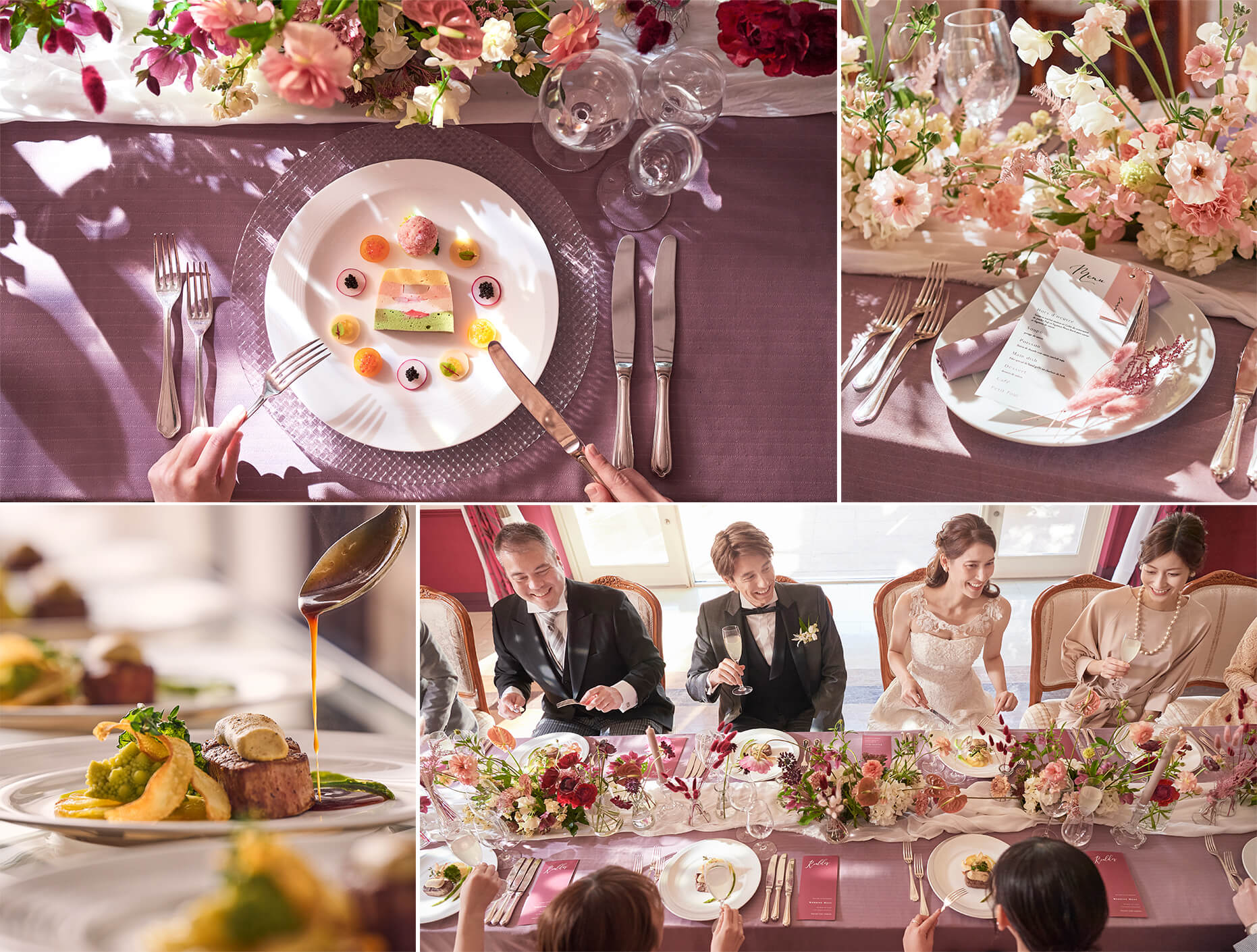 和食を中心とした本格会席料理は幅広い年代のゲストにも喜ばれ、老舗ならではの丁寧なおもてなしと落ち着いた空間で、家族や親しいゲストに囲まれたアットホームなホテルウェディングが叶います。
